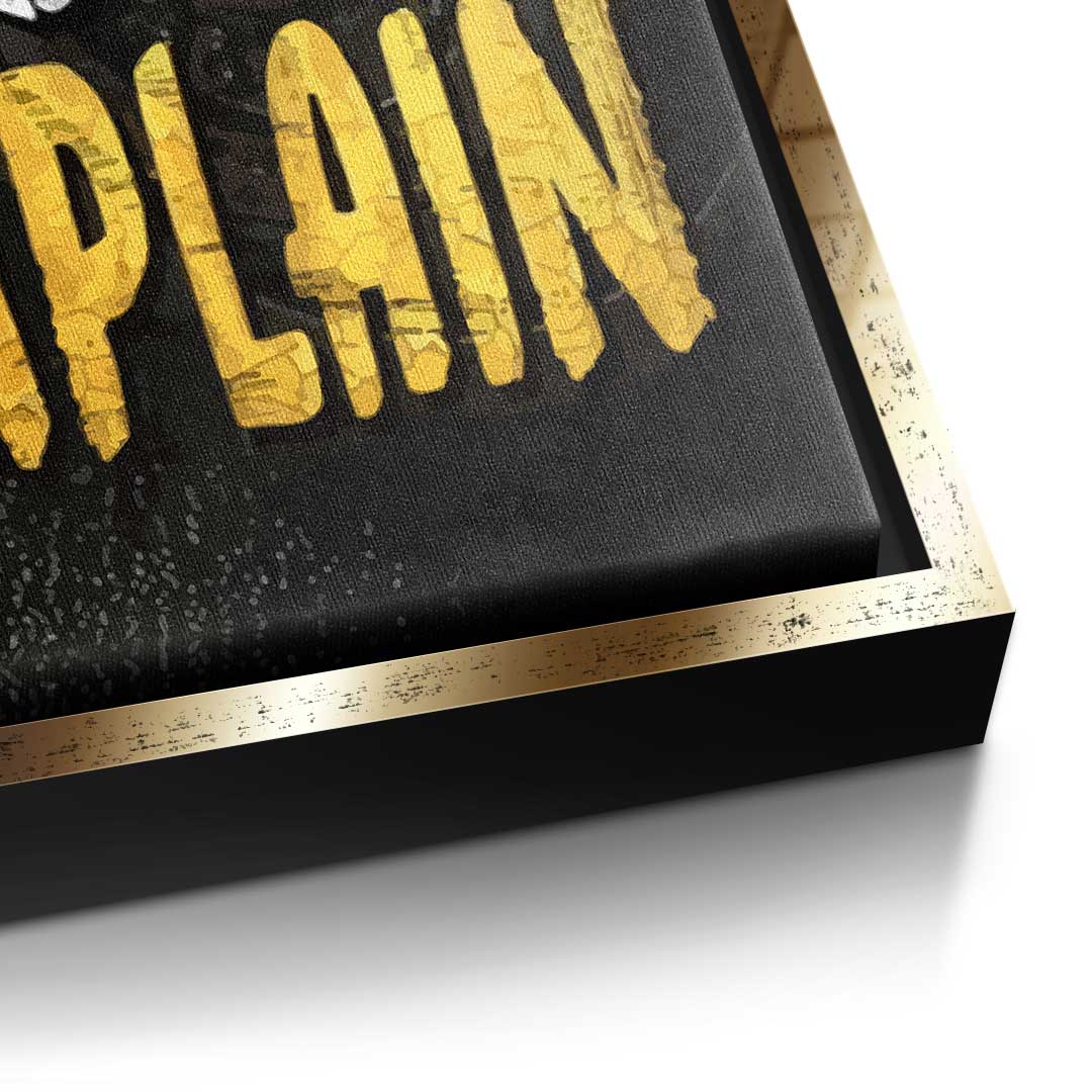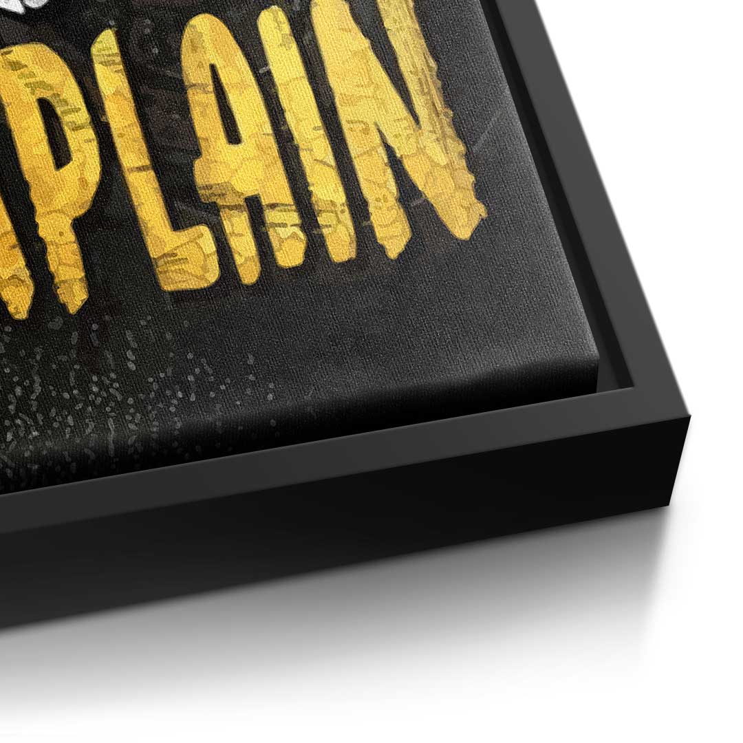 DOTCOMCANVAS® Premium Leinwandbild mit Motivationsspruch und Sportmotiv in Schwarz und Gelb.