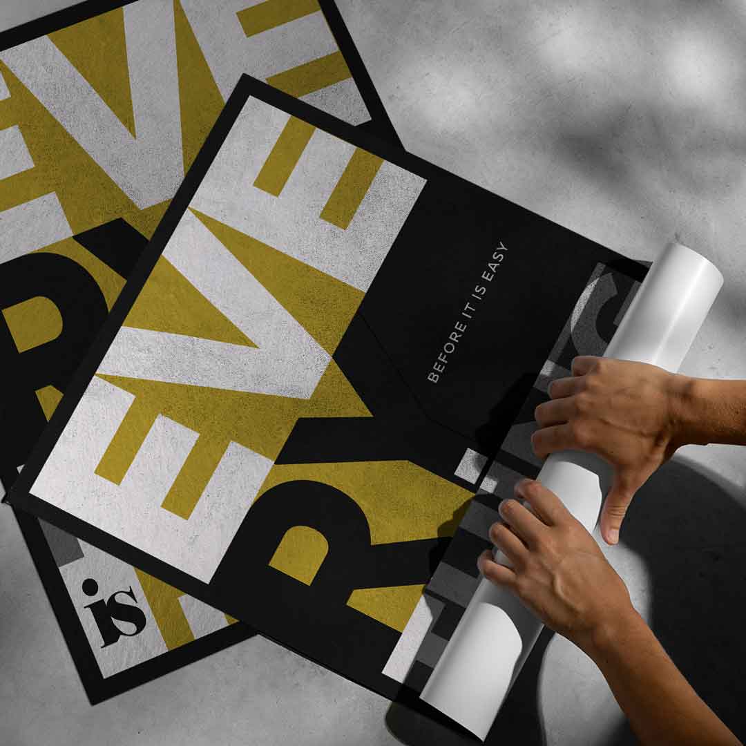 DOTCOMCANVAS® Premium Poster mit EVERYTHING IS HARD BEFORE IT IS EASY Motiv.