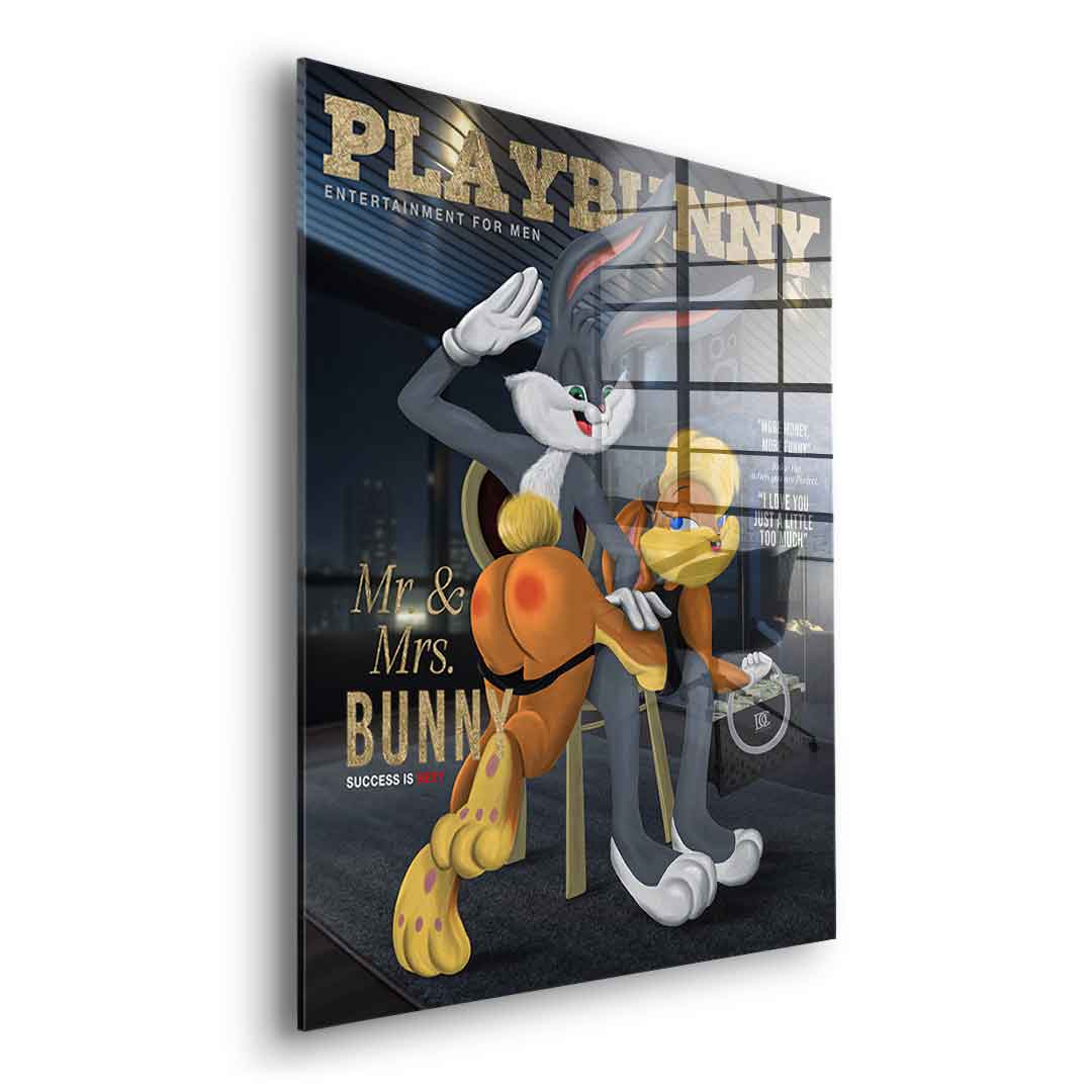 DOTCOMCANVAS® Premium Blattgoldbild mit Playbunny / Bugs Bunny - Motiv im Comic / Cartoon Stil.