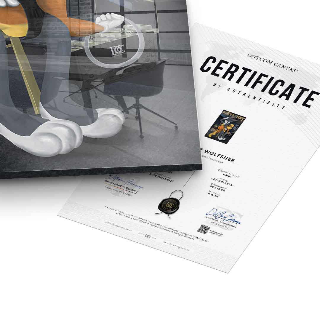 | BlattgoldbildDOTCOMCANVAS® Premium Blattgoldbild mit Playbunny / Bugs Bunny - Motiv im Comic / Cartoon Stil.