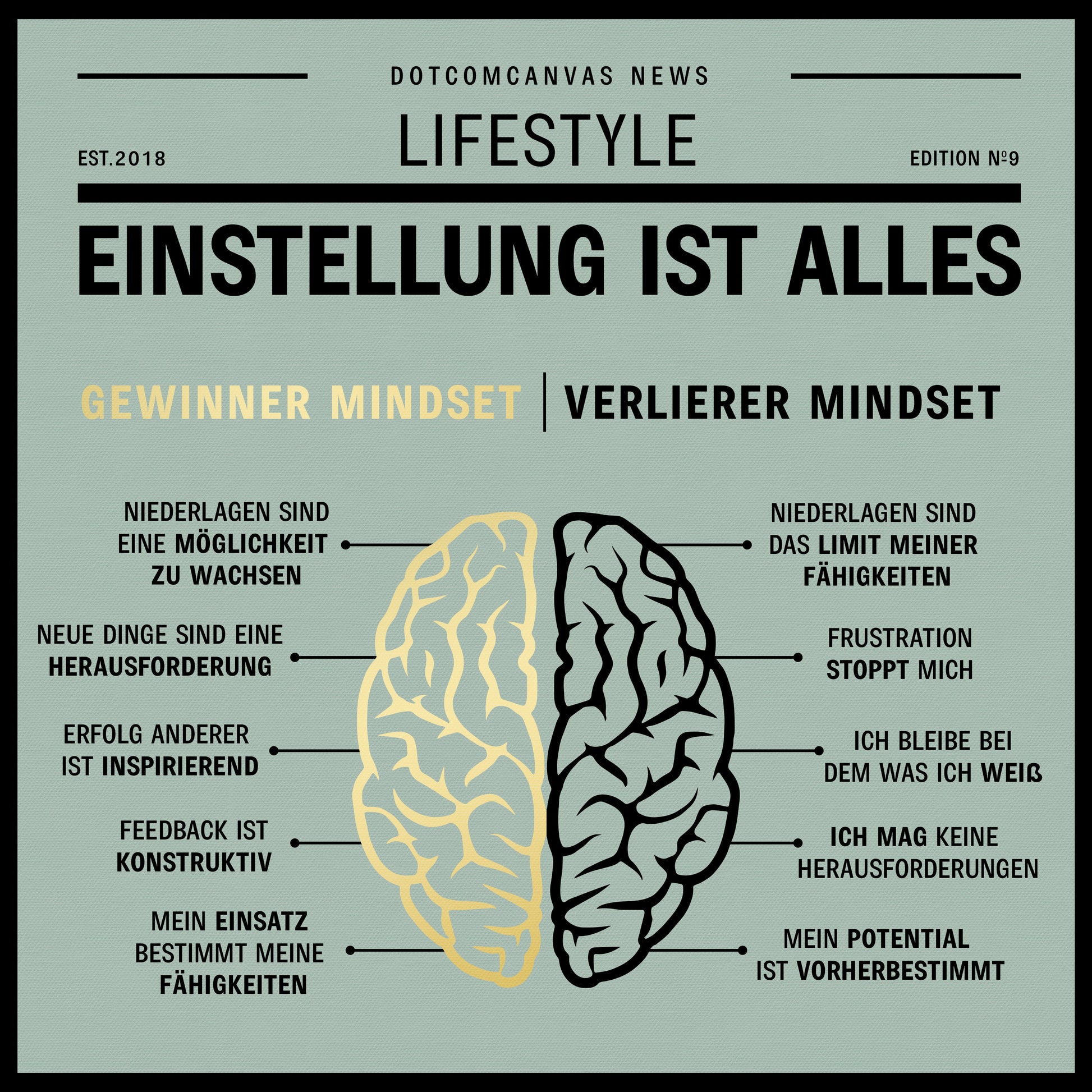 DOTCOMCANVAS® wall art with a motivational quote in green, black, and gold. Also available as a bundle and in portrait format.