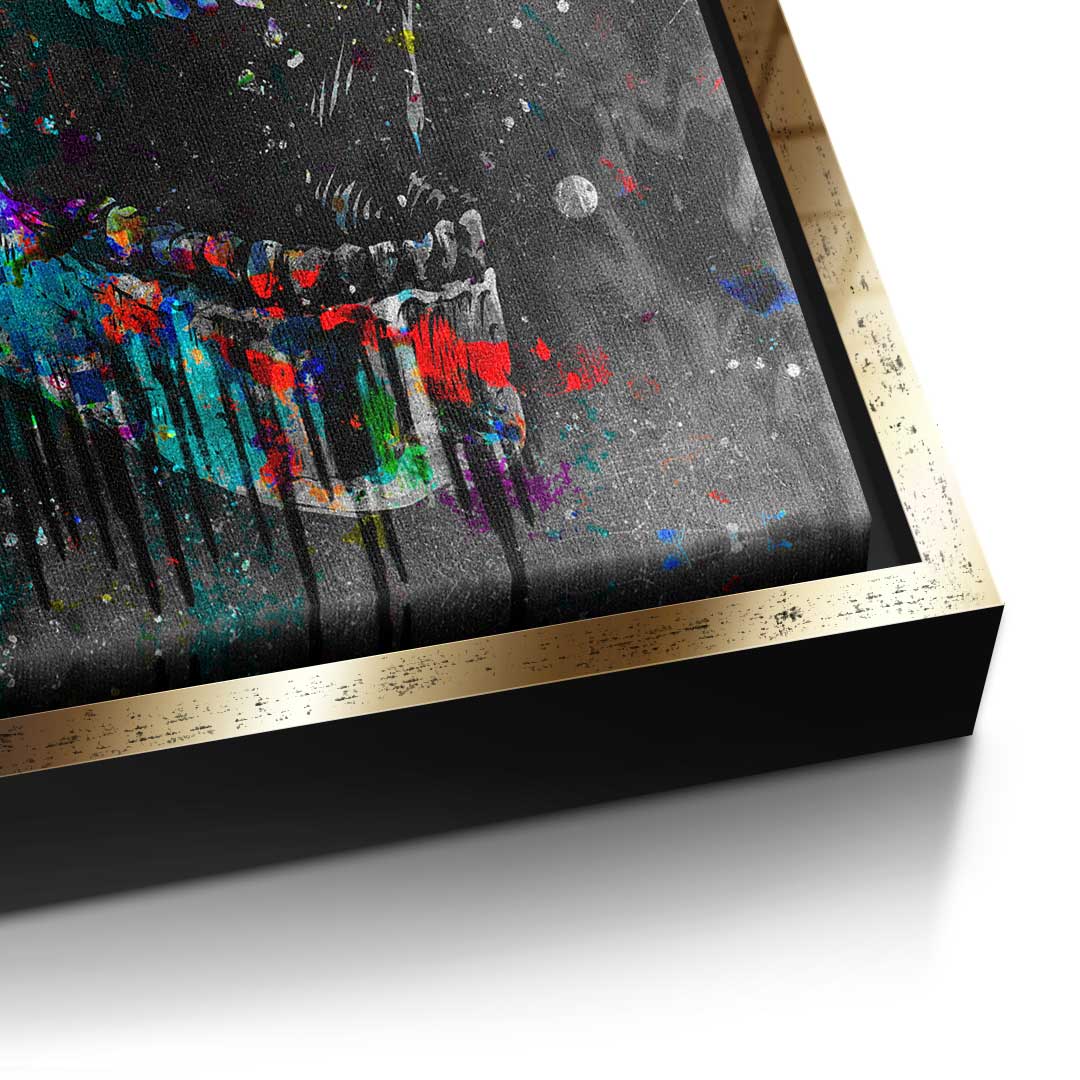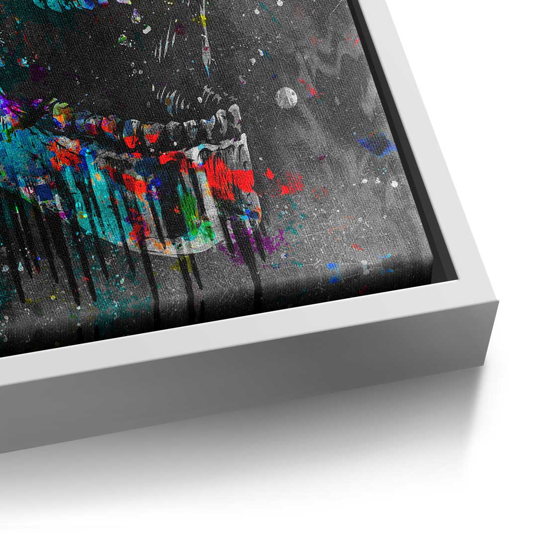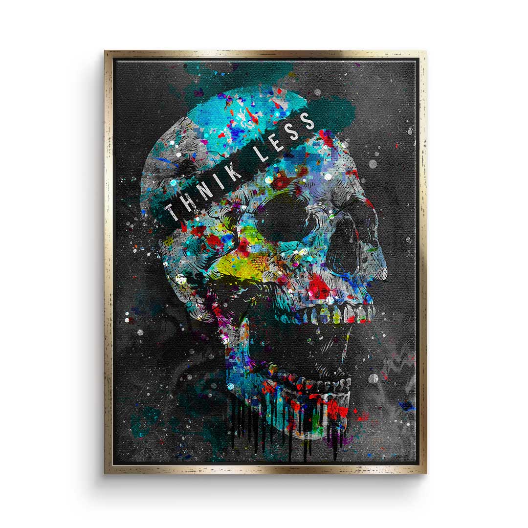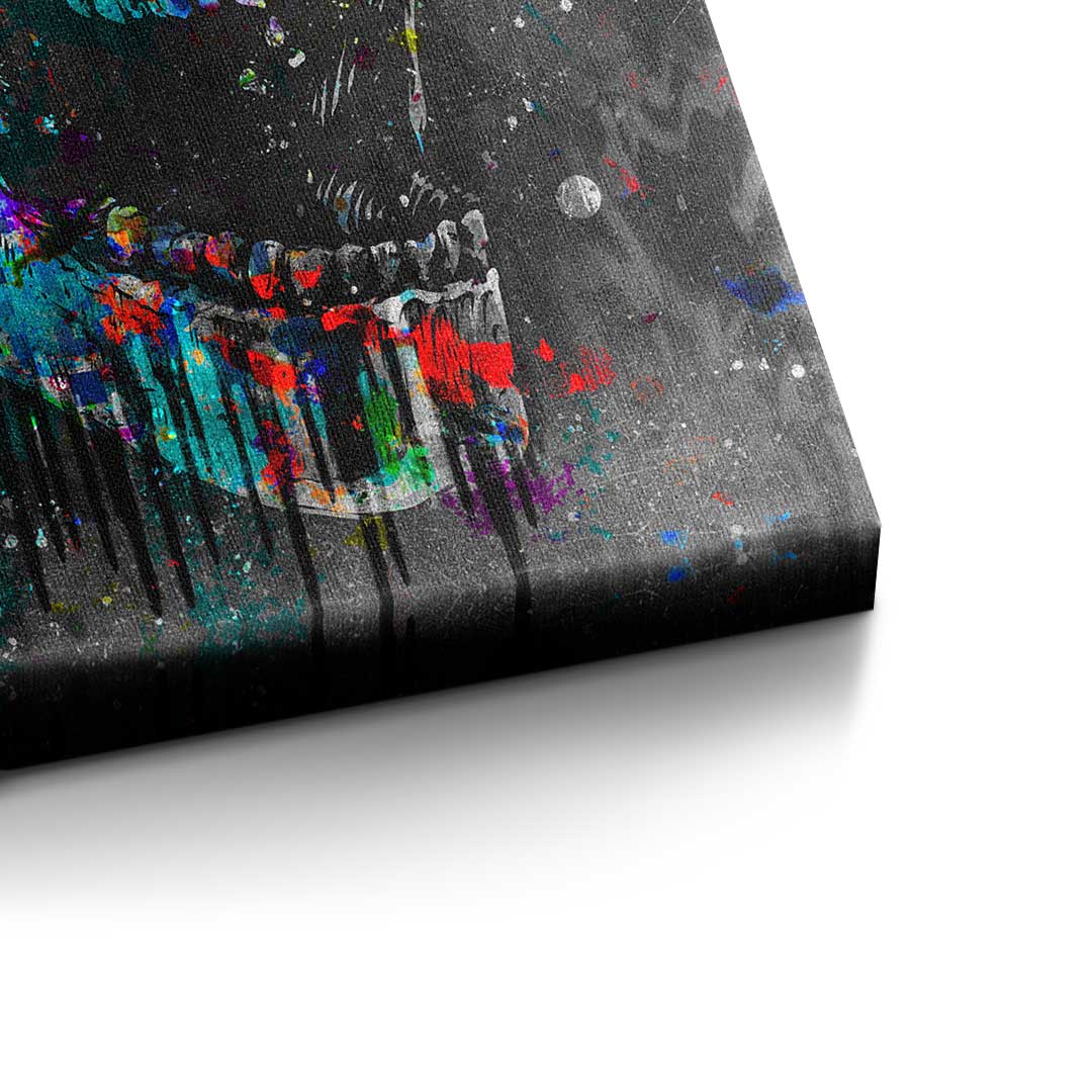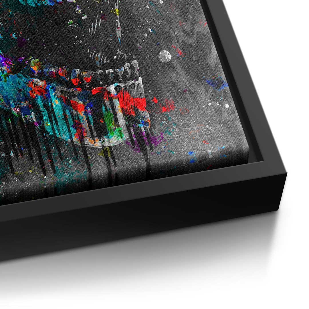 DOTCOMCANVAS® Premium canvas print in Pop Art style with colorful skull and motivational quote.