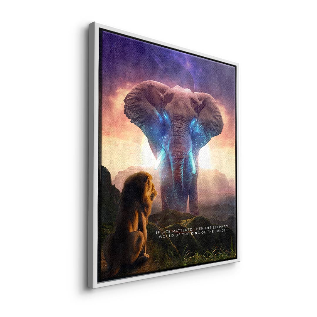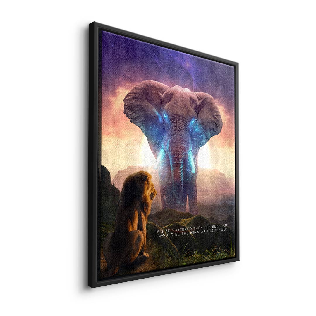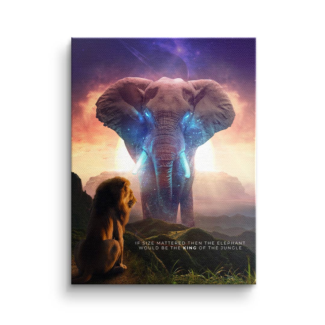 DOTCOMCANVAS® Premium Canvas Print with Elephant & Lion Motif - True King