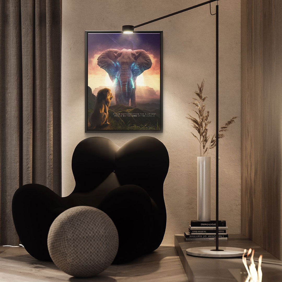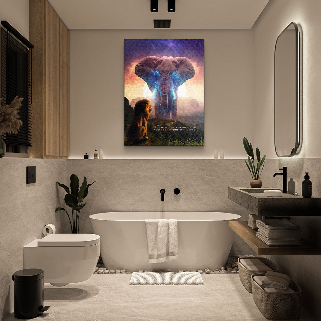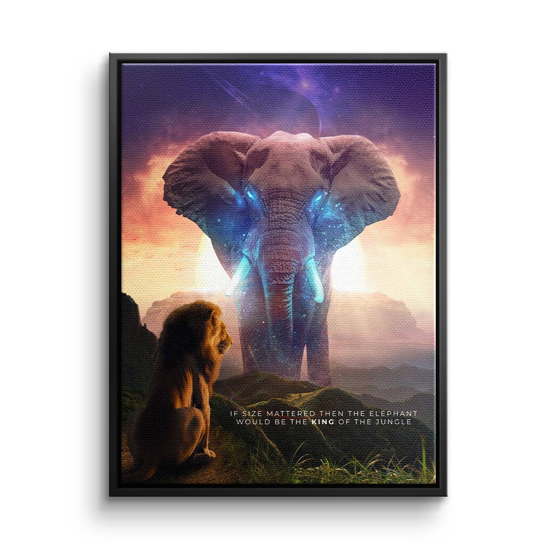 DOTCOMCANVAS® Premium Canvas Print with Elephant & Lion Motif - True King