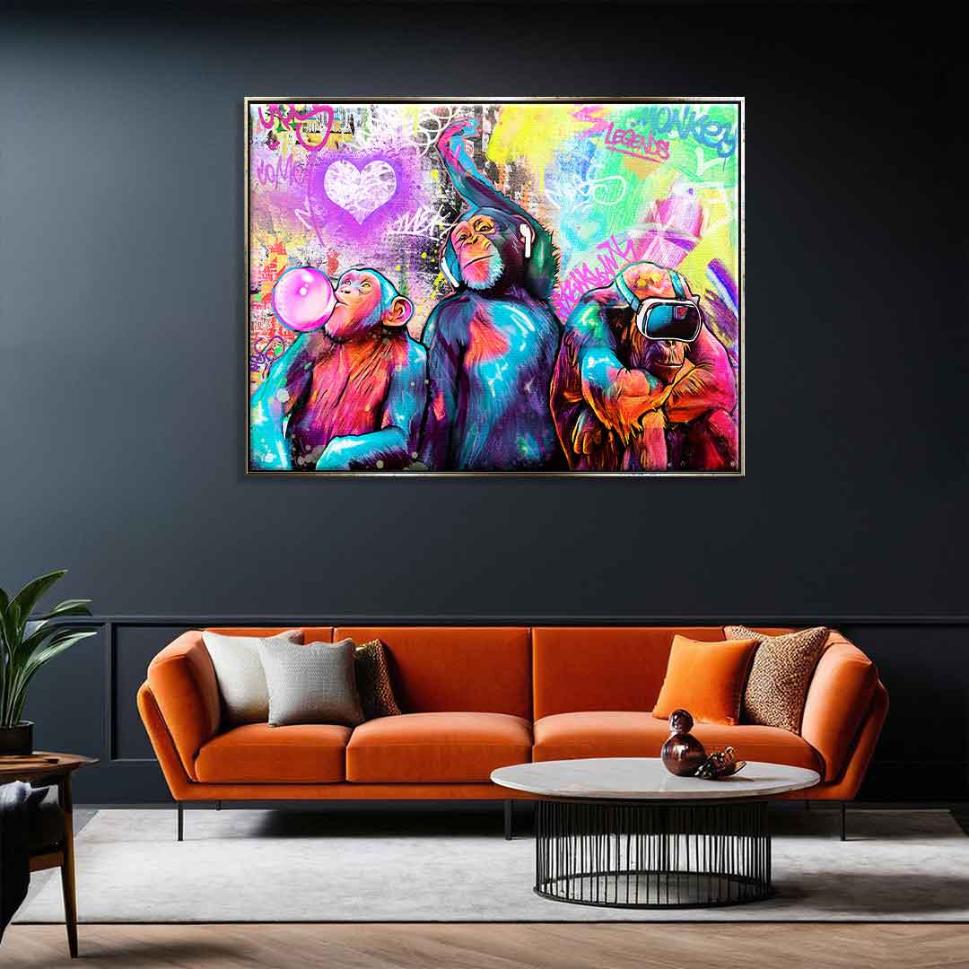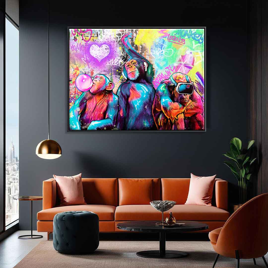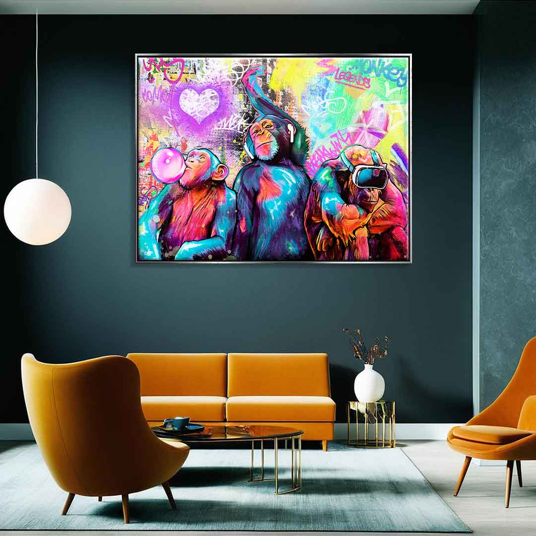 DOTCOMCANVAS® Premium Leinwandbild mit Tree Monkey Motiv im Pop Art Stil.