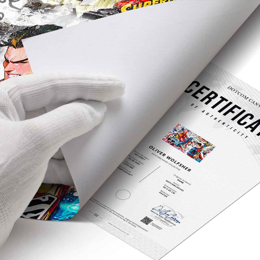 DOTCOMCANVAS® Premium Poster mit Superman & Spiderman Motiv.